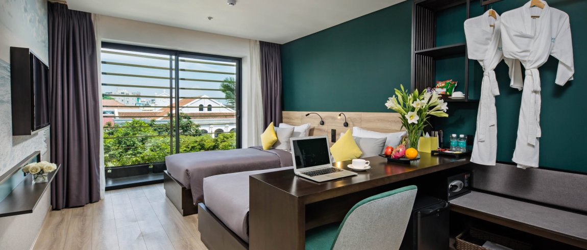 Surrounding yourselves in comfort and convenience with fantastic views facing the Han River or Con Gà Church. A simple modern designed room with 27 sqm perfectly for 2 people traveling.