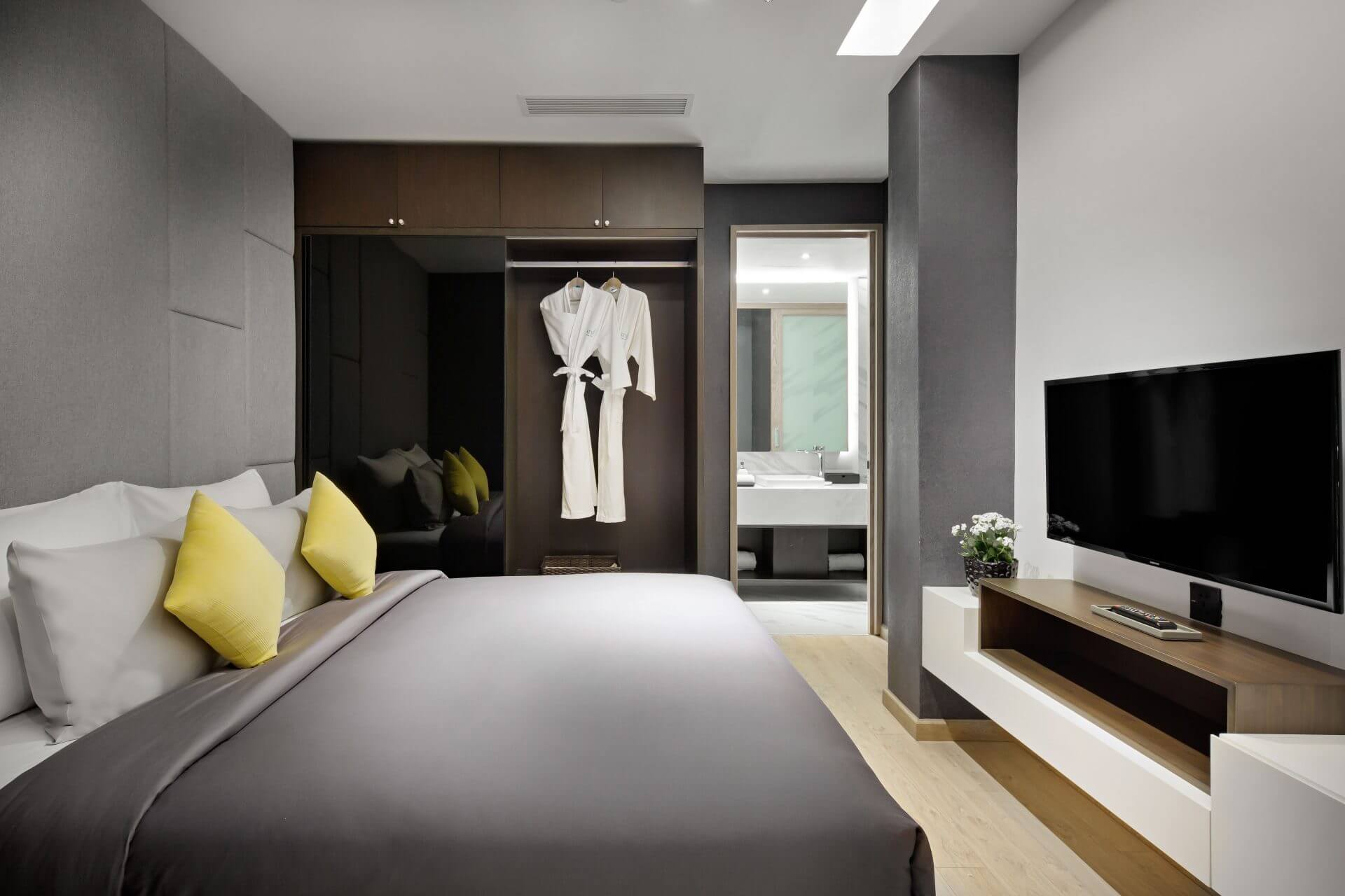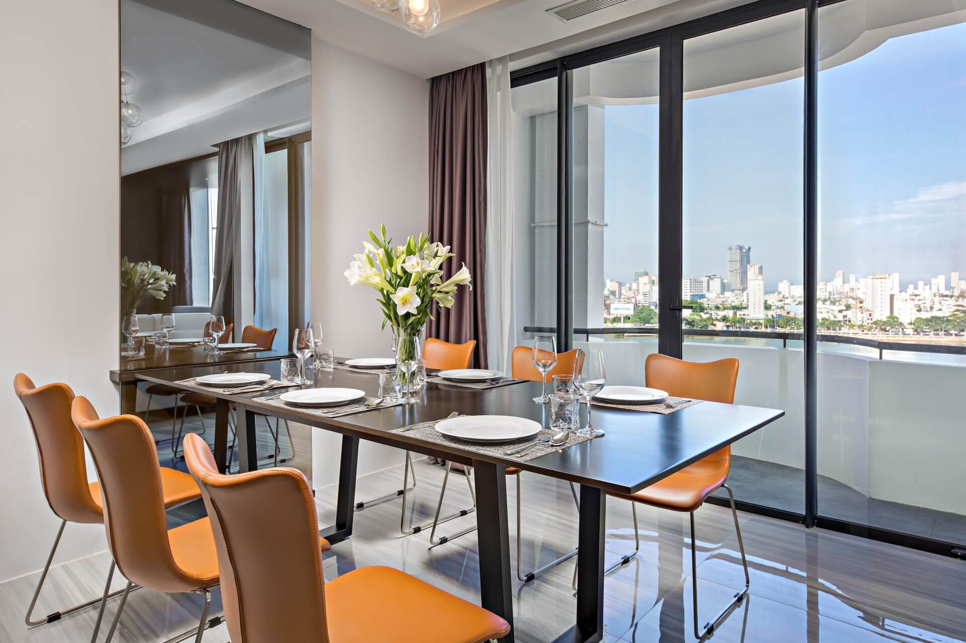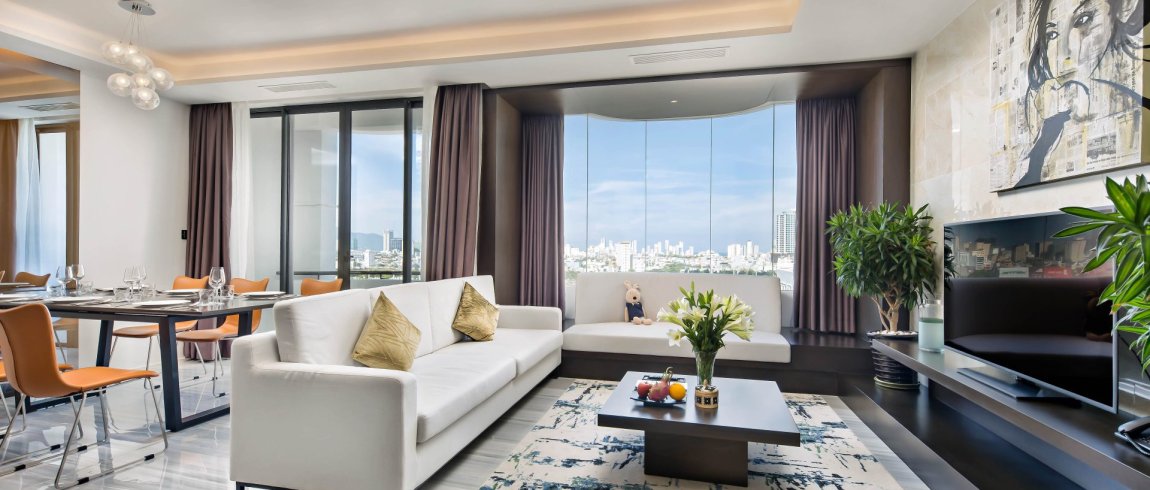 The Penthouse offers the finest luxuries and comforts, including 100 sqm elegant room interior design, with 2 bedrooms for group or family stay and outstanding amenities. The panoramic views from the Penthouse are utterly magical. Guests can take in the morning sunrise, evening sunset, and the colors that reflect on the Danang Cathedral and the famous Golden Dragon bridges from the city.