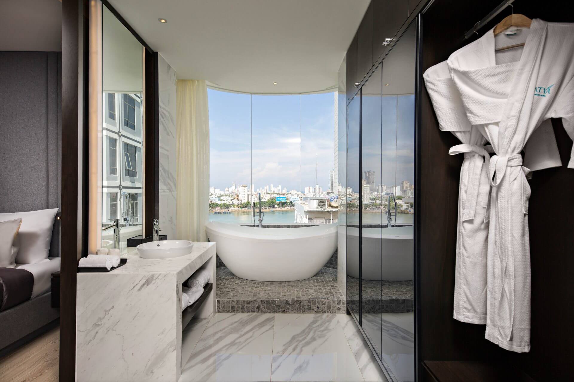 The Penthouse offers the finest luxuries and comforts, including 100 sqm elegant room interior design, with 2 bedrooms for group or family stay and outstanding amenities. The panoramic views from the Penthouse are utterly magical. Guests can take in the morning sunrise, evening sunset, and the colors that reflect on the Danang Cathedral and the famous Golden Dragon bridges from the city.